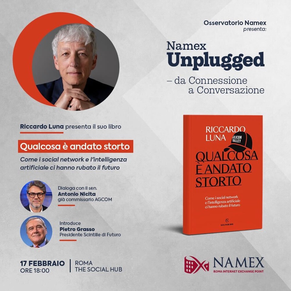 Nel corso della serata sarà presentato il libro di Riccardo Luna, “Qualcosa è andato storto – Come i social network e l’intelligenza artificiale ci hanno rubato il futuro”, con un momento di dialogo e confronto. Dialogherà con Antonio Nicita (già Commissario AGCOM) e introdurrà l’incontro Pietro Grasso, Presidente di Scintille di Futuro. In allegato la locandina dell’evento.
